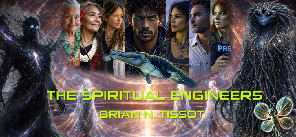 At the heart of the novel is Rigel Kaʻuhane Anderson, a human raised on Thalassa among the Nesoi, an ocean-dwelling species descended from Earth’s early cetaceans. Drawn into the Engineers’ orbit, Rigel undergoes a series of ordeals—entering a diamond-core star, confronting mirrored versions of himself, witnessing civilizations that failed to change in time, and resisting forces that mistake purity and certainty for truth. Rather than choosing between light and shadow, Rigel learns to stand between them, integrating protection with compassion and refusing the seductive clarity of becoming a savior. His journey reframes heroism as presence, restraint, and the capacity to metabolize suffering without passing it on. The Spiritual Engineers is ultimately a meditation on stewardship—of worlds, of stories, and of the fragile, shared work of becoming conscious in a living universe.
